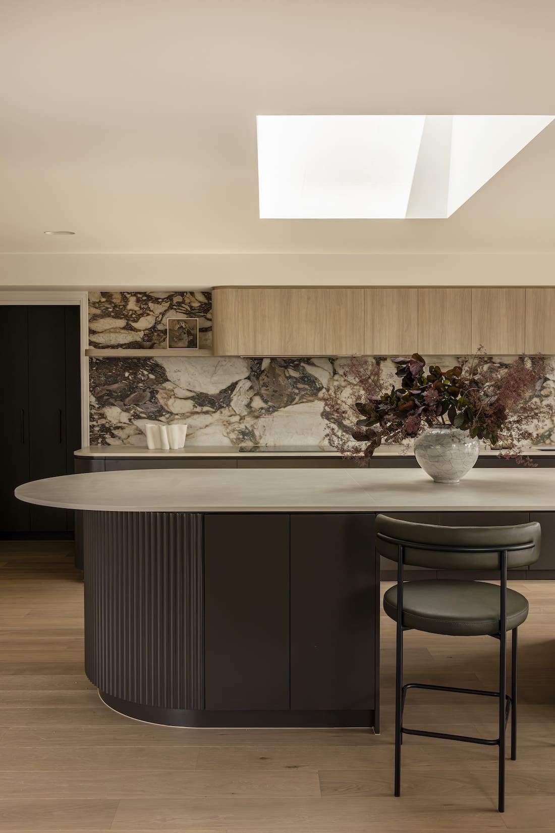 “The kitchen splashback stone, Calacatta Viola, anchored the materials palette. It set the tone for the entire home,” says Phoebe.