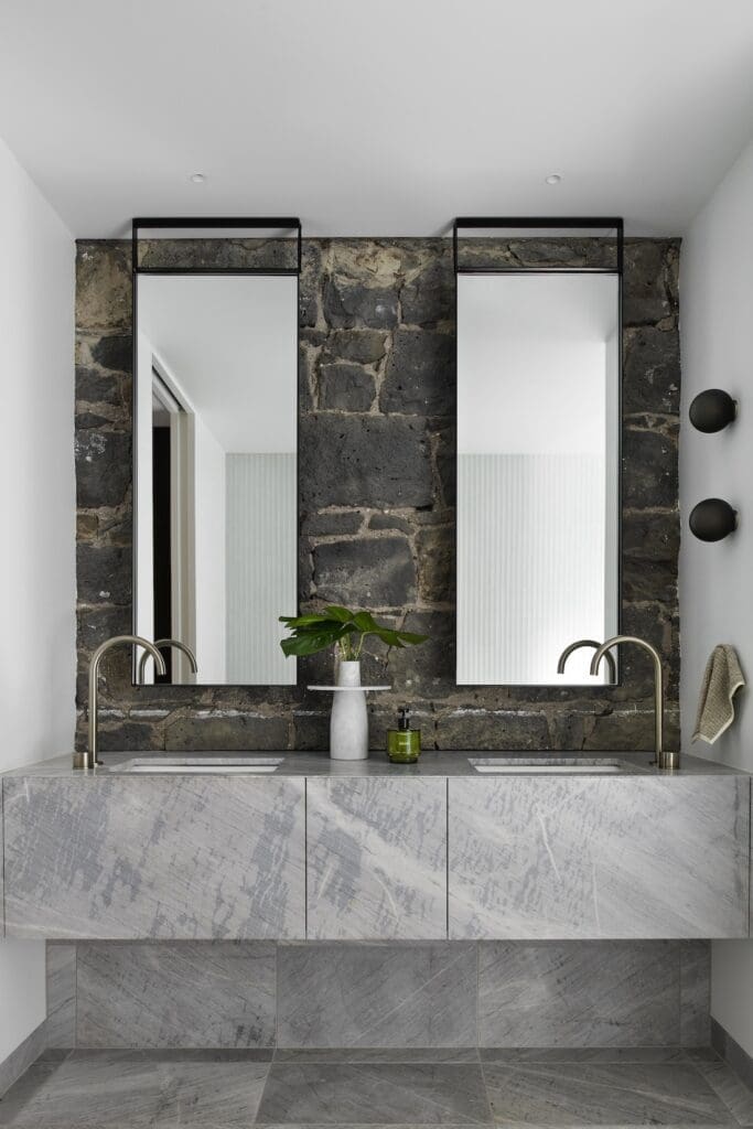 “The design thoughtfully weaves the home’s bluestone legacy throughout. From the dramatic exposed stone wall in the master ensuite, to textural echoes in other spaces like the loft-style bedroom.