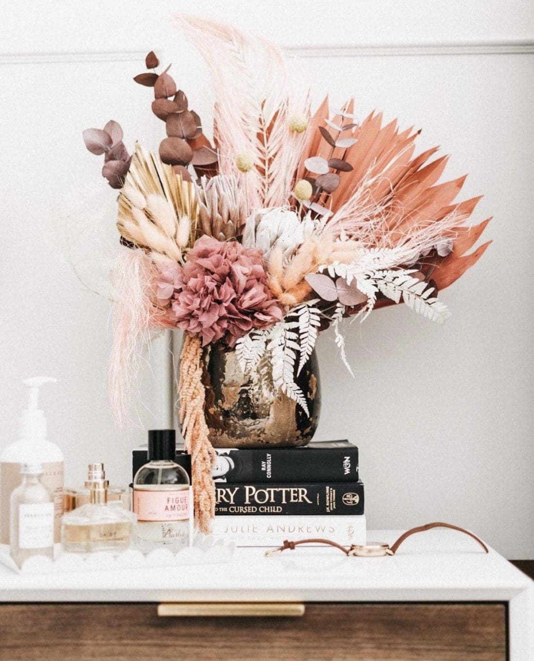 Dried florals can be used as a stylish and beautiful decor piece in any room of the home. And because they need virtually no care (just a gentle dust every so often to keep them looking fresh) you can simply set and forget!