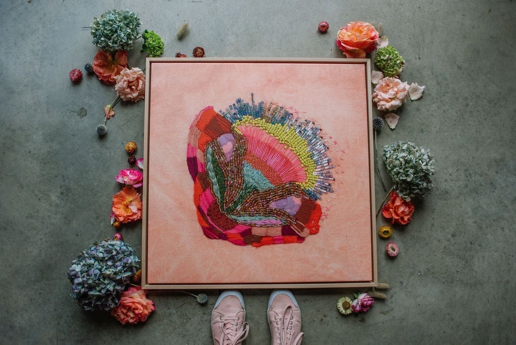 A celebration of joy and colour, Fleur’s embroidery pieces make a real statement in the art world.