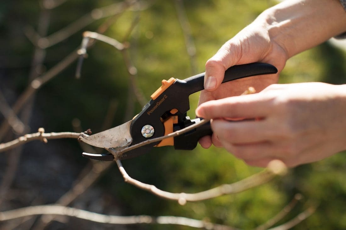 Roses and fruit trees can deal with a hard prune. After pruning, give your plants a bit of love with some lime sulphur to stop exposed cuts from getting fungal infections.