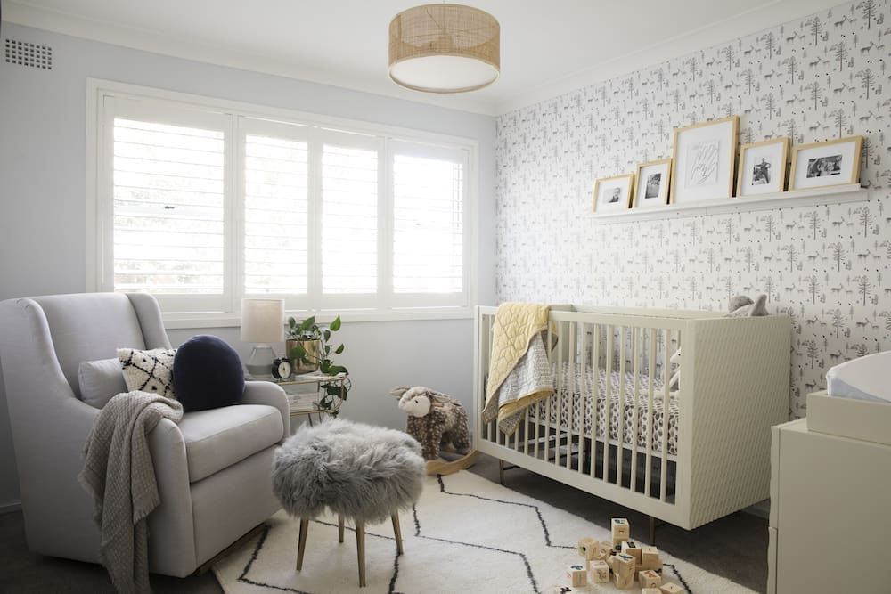 “Even though we know we’re having another son, I love that this room feels unisex. Babies don’t really care what their room is like, let’s face it, but we will definitely be able to keep this wallpaper when we turn it into a big boy room with a bed and more of his own choices down the track.”