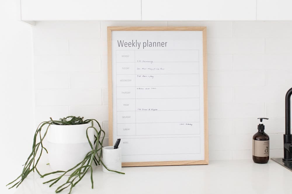 Whether you live alone or are running a household with busy children, it’s a great idea to create a weekly planner where you can set out your agenda for the week. From scheduling appointments, to jotting down important dates, and even allocating chores to everyone living in your home, a white board in a high traffic area of the home works a treat. You can use coloured pens and magnets to colour code it for family members. Plus, if you keep it on display, nobody can conveniently forget it’s their turn to put the bins out!