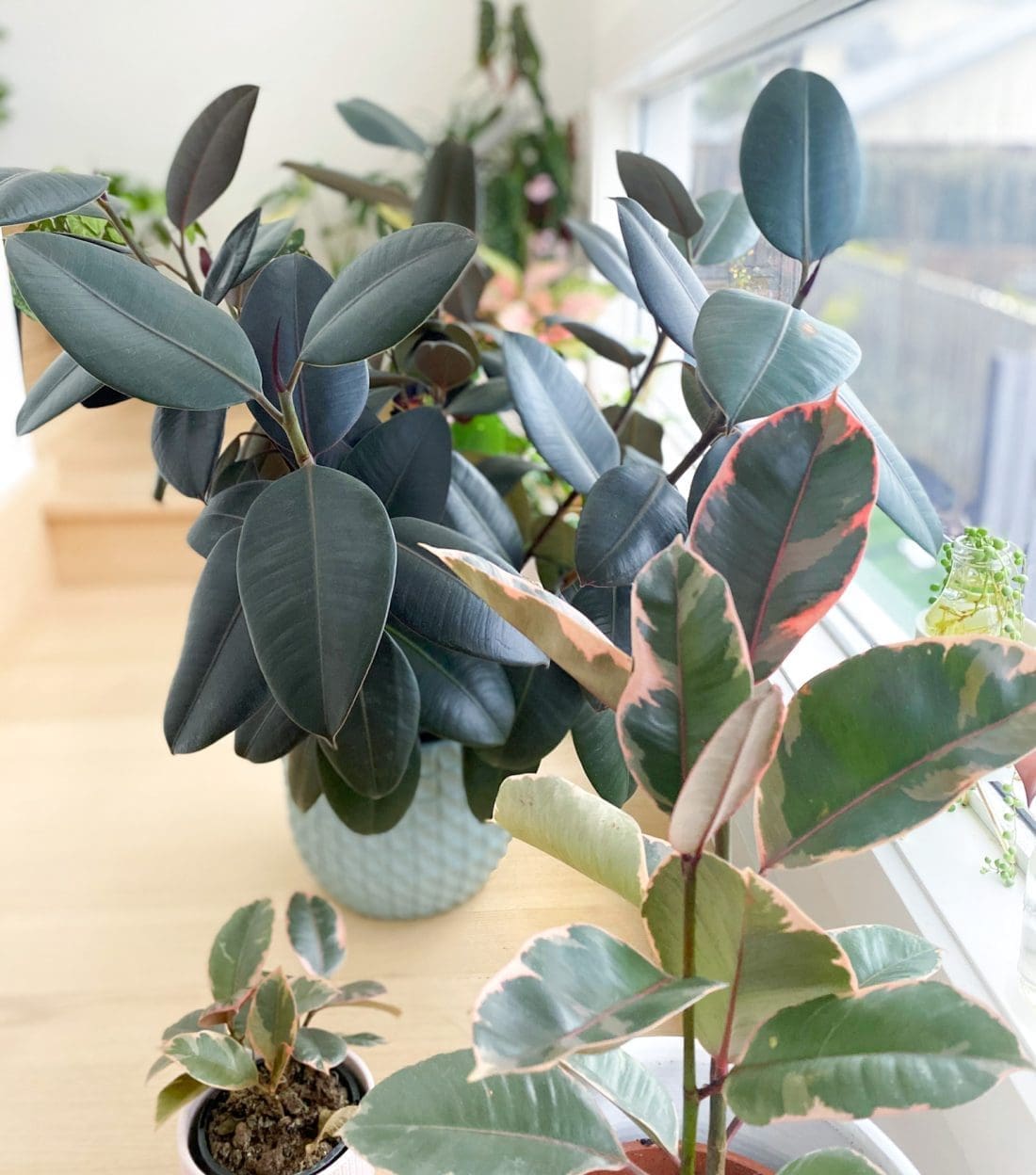 Rubber trees, known as ficus elastica, are a great indoor plant which can be grown as medium-sized plants or larger-sized plants up to 7-10m within a few years when the conditions are right. If you want to keep them as smaller plants, you can restrict their growth by keeping them in smaller pots. I love them for their durable foliage so they can sit in high traffic areas of your home.