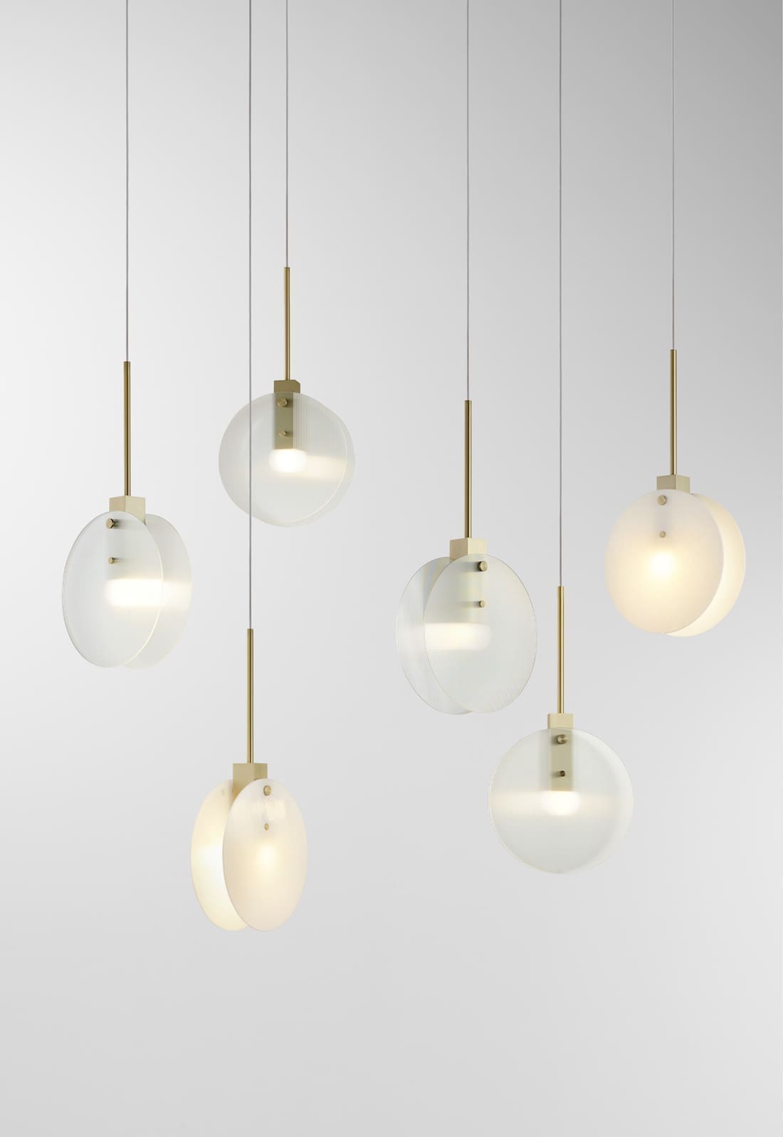 “The chandeliers were driven from the need to create unique lights suitable for larger residential and commercial spaces. They explore the diffusion of light through varying transparent material.