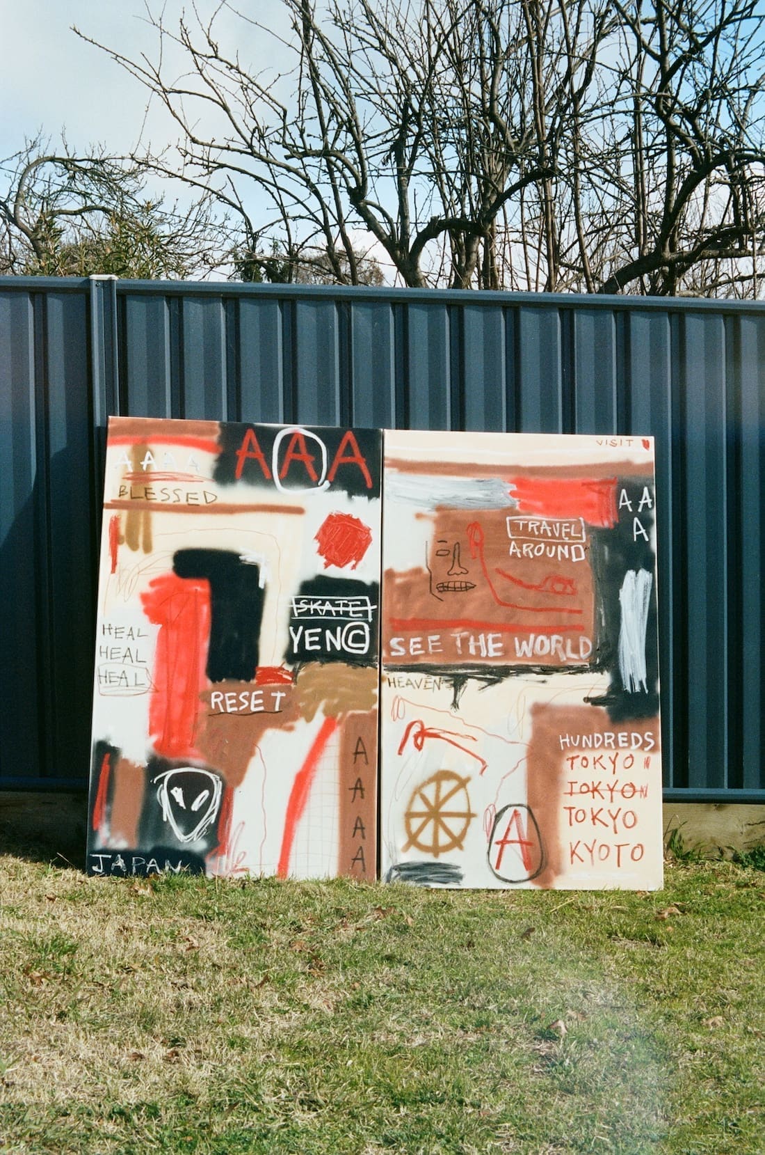 “Each canvas is a collection of aspirations and anxieties combined with cultural references. It showcases my life as a young person navigating life as a ‘third culture’ kid.”