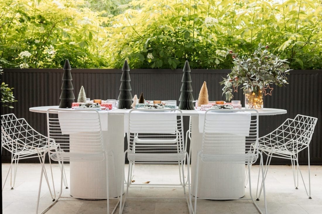 Embracing an on-trend bronze and olive green colour palette, you can easily tweak this alfresco table to suit your colour scheme or Christmas theme. Whatever colour or theme you choose for your Christmas table, let me share some of my favourite Christmas table styling tricks to elevate the look.