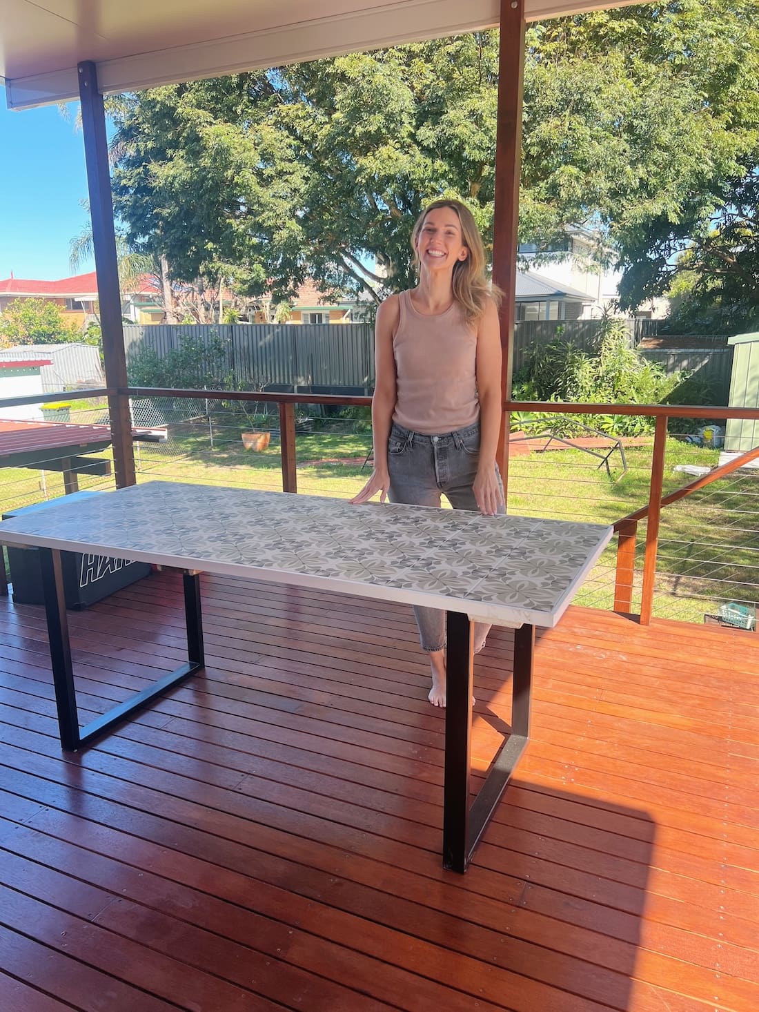 To keep this project budget-friendly, we bought an old door and some metal table legs from Facebook Marketplace (that had well and truly seen better days!) and gave them a whole new lease on life. Here’s how we turned them into a patterned tiled showstopper!