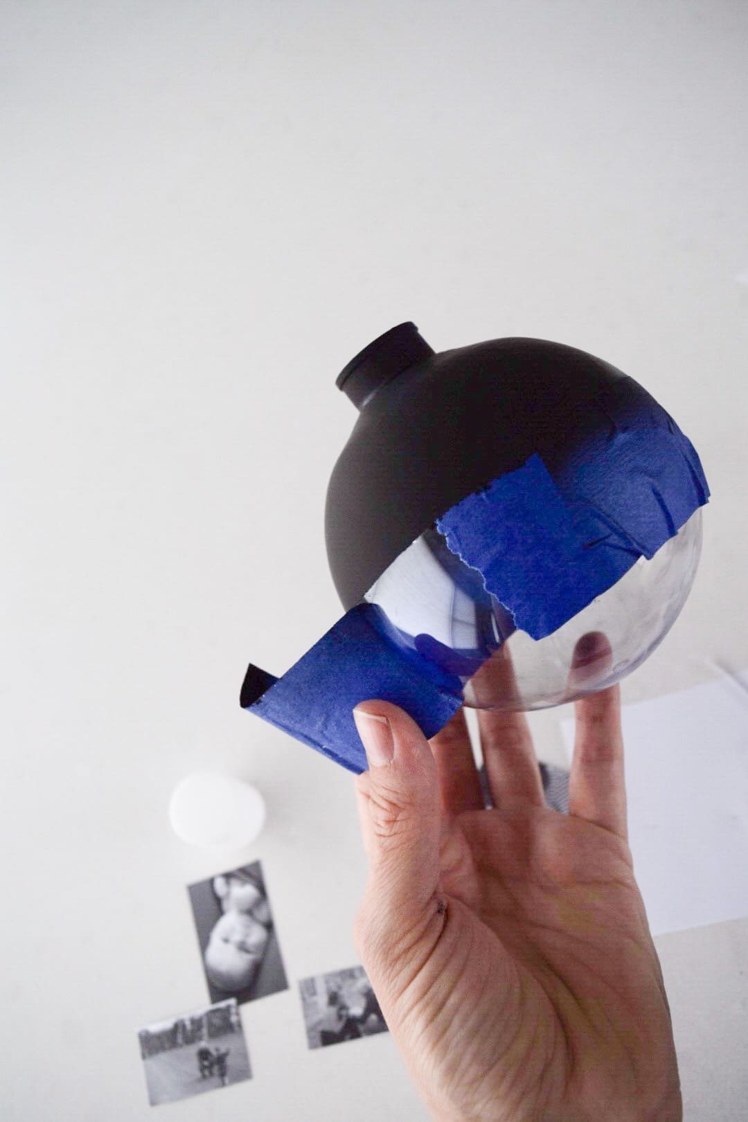 1. Apply masking tape around the bauble and remove the cap of the ornament.