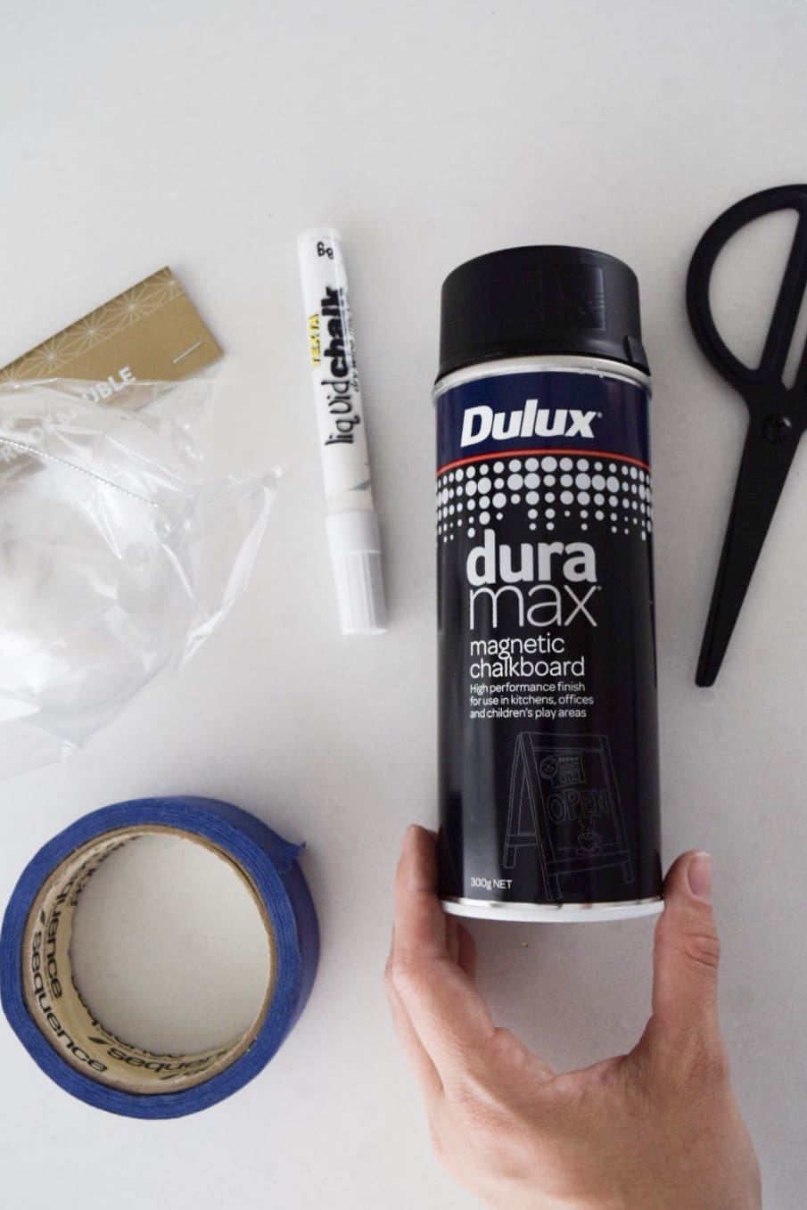 2. Spray paint the taped off section with two coats of the Dulux Duramax Magnetic Chalkboard spray paint. Allow the paint to fully dry in between coats to achieve an even paint finish.