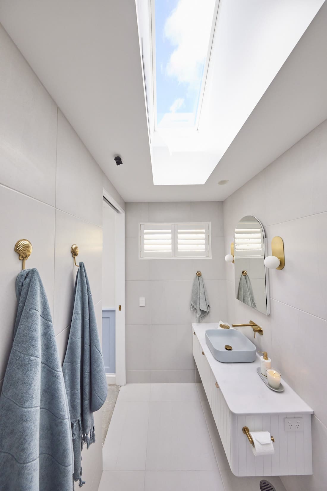 The judges felt the bathroom was neat, compact and well appointed. Erring on the small side, the space was nicely laid out and functional. Big ticks for the gorgeous skylight which allowed plenty of natural light to filter the space. The judges also like the powder blue sink and shower tile choice.